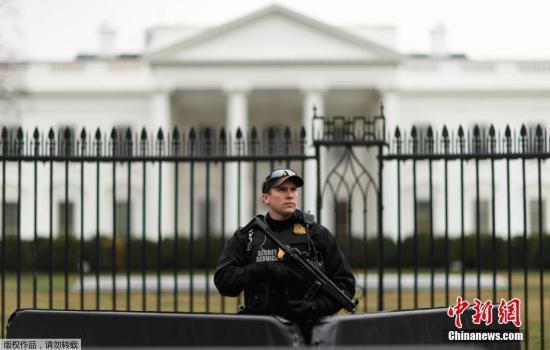 资料图:一名警卫在白宫前执勤。