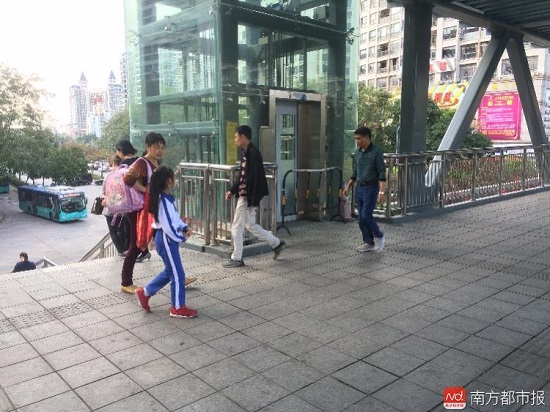 随后南都记者就该情况向相关部门反映。南山区建筑工务局龙珠大道人行天桥项目负责人回复称,该天桥主桥体于2017年6月建成并投入使用。配套电梯于2017年7月完成调试,并于11月取得深圳市市场监督管理局颁发的特种设备使用登记证。2018年3月,天桥除电梯部分外,已全部移交深圳市交通运输委员会进行管理。目前正加紧办理电梯的特种设备使用登记证的主体过户手续及相关移交程序。而在移交办理完结前,电梯暂不能开通运行。据该负责人透露,预计4月底,天桥各项设施都将正常运行。