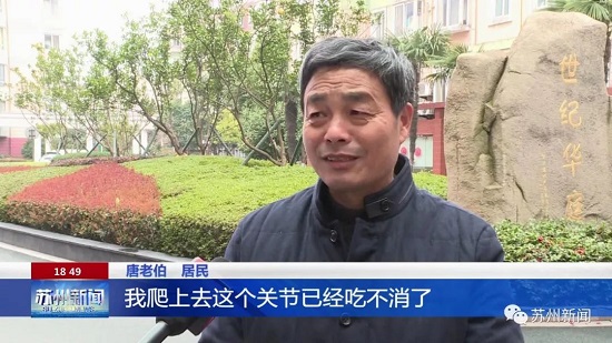 张家港世纪华庭小区是2003年建成的10栋7层楼房都没有电梯,爬楼对于小区里很多老年居民来说,着实辛苦。即便是体育老师退休的唐老伯都感慨“吃不消”。
