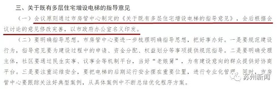 本月上旬,张家港市政府召开第11次常务会议,原则性通过了《关于既有多层住宅增设电梯的指导意见》。意见对老旧小区加装电梯的适用范围、职责分工、工作流程都进行了确认。