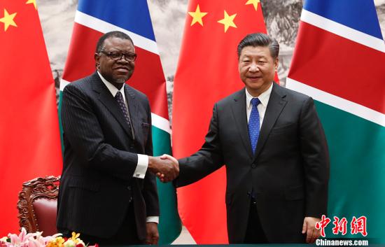 3月29日,中国国家主席习近平在北京人民大会堂同纳米比亚总统根哥布举行会谈。会谈后,两国元首共同见证了基础设施、融资、检验检疫等领域双边合作文件的签署。中新社记者杜洋摄
