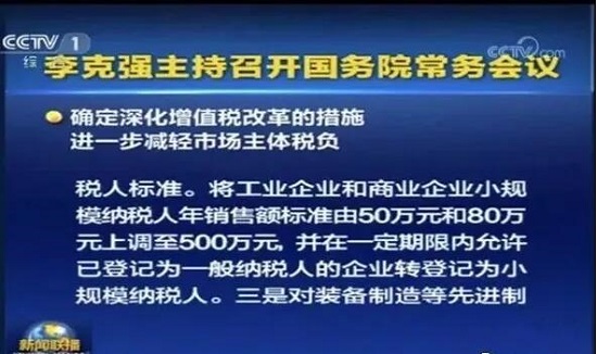 二是统一增值税小规模纳税人标准。将工业企业和商业企业小规模纳税人的年销售额标准由50万元和80万元上调至500万元,并在一定期限内允许已登记为一般纳税人的企业转登记为小规模纳税人,让更多企业享受按较低征收率计税的优惠。
