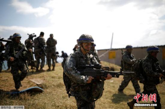 资料图:2017年4月2日,韩国浦项市,韩国海军参加韩美联合军演“鹞鹰”登陆演习。