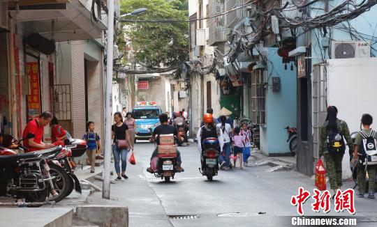 “港门村社区很多巷子都是一车道,我们这条线差不多三分之一都是这样的小路。”临近路口,陈忠华减慢车速,观察路况后通过。“这里有时上下班高峰电动车都走不了。”