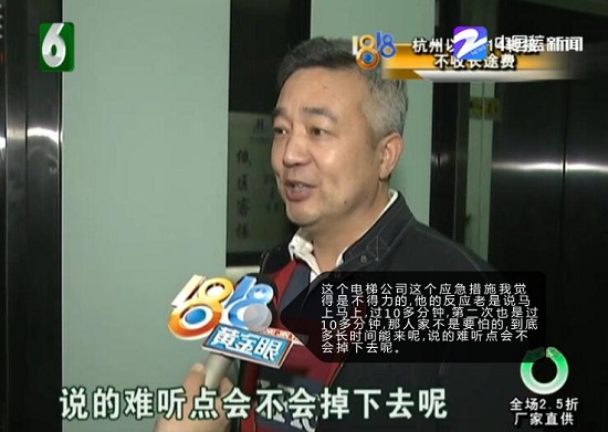 沈先生说,总共关了多长时间30多分钟,当然有恐慌心理的,还好看了看是2楼,想想还不要紧,稍微心理踏实了一点。