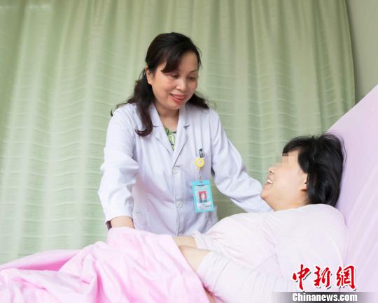 图为周洁琼主任术后检查陈女士恢复情况。张祖国摄