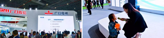 展位上,广日人以张扬激情的现代舞、结合“智能电梯信赖随行”营销宣传片,在余音绕梁的情境中,表达愿与广大客户和相关方一同,共同践行“电梯智无界协力信可成”的情怀!