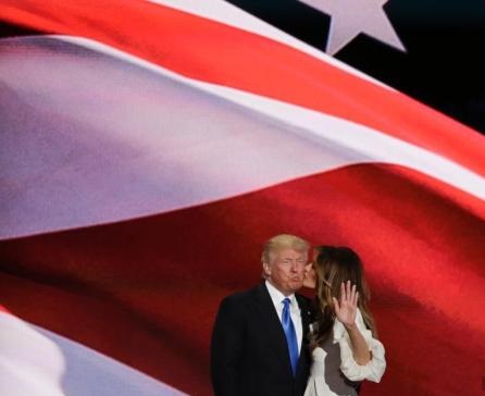 资料图:当地时间7月18日,美国俄亥俄州克利夫兰,美国共和党全国代表大会首日,美国总统大选共和党“假定提名人”特朗普携妻亮相。中新社记者廖攀摄