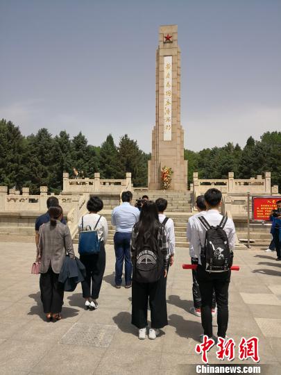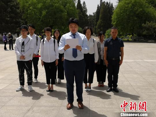 “暴走漫画”CEO任剑带领团队一行9人在董存瑞烈士纪念碑前道歉。张桂芹摄