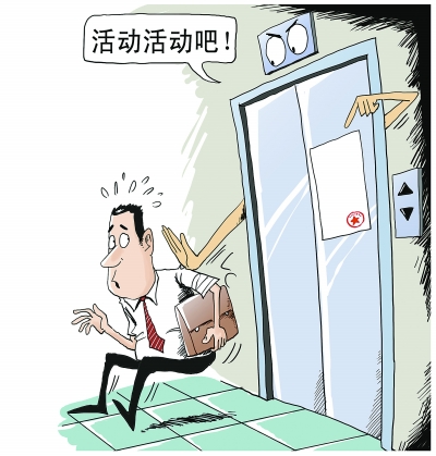 这栋楼里,也住了一些年轻人,电梯的问题不光是困扰着老人、孕妇,上班族同样叫苦。工作忙碌,难免加班,回来晚了超过24点,就得爬楼。有居民抱怨,周末晚上看场电影,一边看一边掐表算着电梯关闭时间,电影都看不踏实。一早5点多赶飞机,没有电梯,拎着大行李箱下楼的滋味不好受。住户小张说,前几天晚上有个应酬,喝不少酒,回到小区时超过了晚上12点,没有电梯可乘,自己顶着酒劲,跌跌撞撞爬楼,爬得好几次想吐。