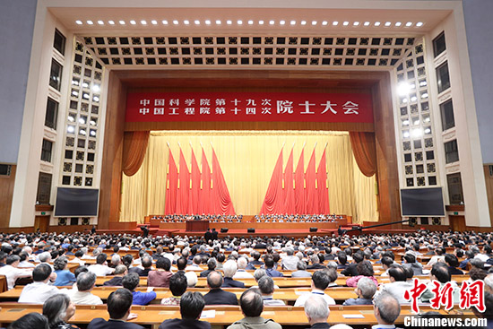 5月28日,中国科学院第十九次院士大会、中国工程院第十四次院士大会在北京人民大会堂隆重开幕。中新社记者盛佳鹏摄