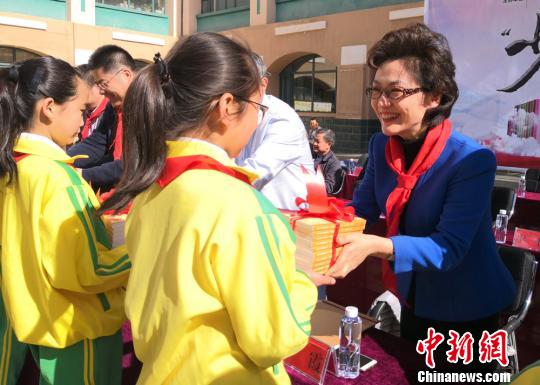 中新网兰州5月31日电(记者刘玉桃)“平时我们经常朗诵一些古诗词,但是缺乏感情,普通话也不是很标准,对文化内涵理解不是很透彻,今天收到很多课外读本,很开心。”甘肃省临夏回族自治州东乡族自治县幸福学校学生马恩欣说,“今后学习中,我们要理解掌握传统文化内涵,也要讲好普通话,这样与全国各地的小朋友都可以交流。”