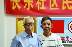 陈壮亮和何盛坤同住长乐后街49号,二人是对门的邻居,年龄相仿,兴趣爱好相似,也是多年的老朋友。一头黑发的陈壮亮今年69岁,一头银发的何盛坤今年已经71岁了。“我也是一头白发,这是昨天专门染的。”陈壮亮说话直率,很快将加装电梯时遇到的繁杂事和盘托出。这当中,有意想不到的挑战,有意料之中的喜悦。