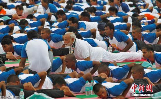 莫迪在“推特”上说:“平静、有创造力和满足的生活之道,就是瑜伽,它让我们知道,该怎么击退紧张和没来由的焦虑。”