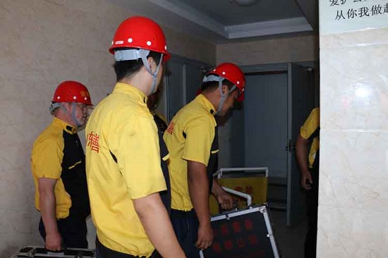电梯维保人员赶到现场后,秩序维护部协助立即展开救援,13分钟后,顺利解救三名被困人员。维保人员进入电梯,全面检查,排除故障及安全隐患,电梯恢复正常运行。整个救援过程应急处置人员行动迅速,程序规范,措施科学得当,演练取得了圆满成功。