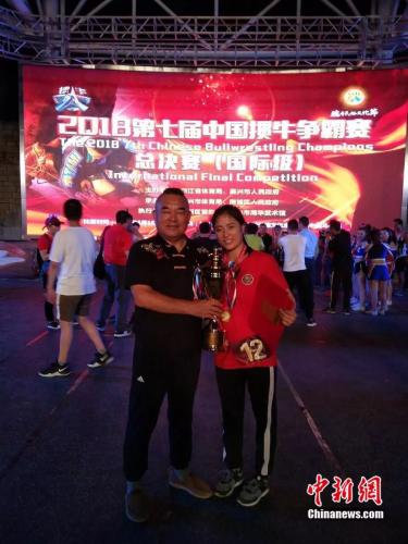 在2018第七届中国掼牛争霸赛中,陶子用了不到一分钟时间将公牛摔倒,战胜同组的男性选手,获得轻量级别(300公斤)的冠军。