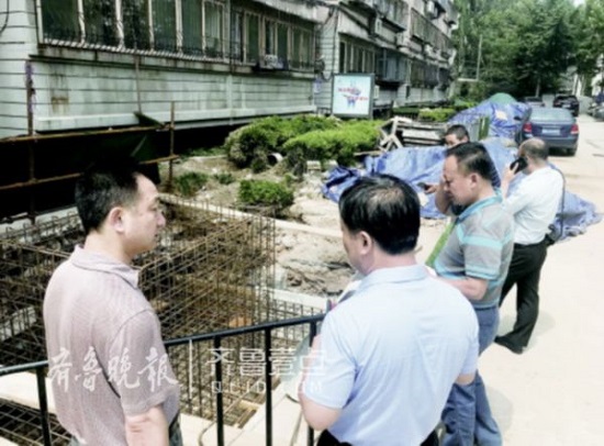 上午9点半,与燃气公司工作人员交涉完之后,汤修贵又急匆匆地赶到省府前街的一单位宿舍,这里也有两部电梯正在加装。电梯井道已经用水泥浇灌完工,但因为靠近的化粪池漏水,无法进行回填。“我们打算先把水都排出来,然后在井道内做防水;水一排出,就立马做防水。”