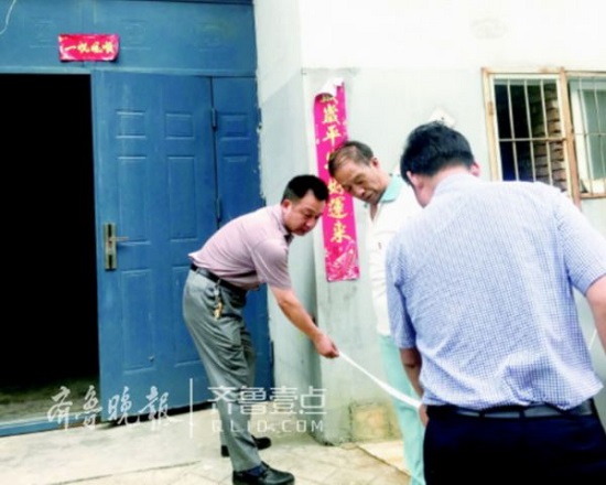 中午吃过饭,汤修贵就匆匆赶到下一个地点。下午1点,他便赶到了地矿局宿舍。“怎么那么多的下水井盖?燃气管道估计也得更改。”来到单元楼门前,看到楼门前地上4个井盖,他职业性地开始勘探起施工情况来,并用米尺丈量估算电梯井道的具体位置。