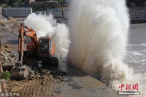 7月10日,随着超强台风“玛莉亚”的逼近,浙江温岭石塘镇海域风高浪急。金云国摄图片来源:视觉中国