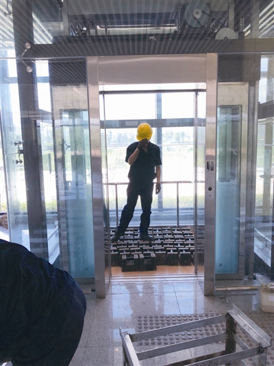 工作人员在电梯里搬入相应重量的砝码,模拟满载运行的情况。