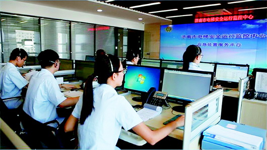 济南市电梯安全运行监控中心负责处理市民来电求救。本报记者于悦摄