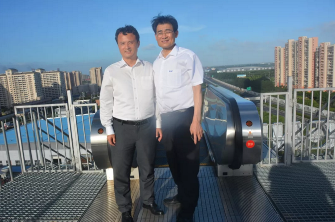 来到全球最高288米康力电梯试验塔,王伟书记体验乘坐了5米/秒观光电梯、10米/秒超高速电梯和50米超大高度自动扶梯。置身于213米观光平台,他连连称赞说,有登上“帝国大厦”、“一览众山小”的震撼感受。