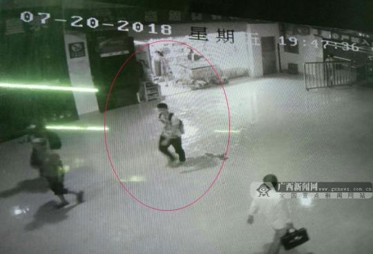 20日晚上7点47分小杨到达南宁市江南客运站,正在出站。视频截图