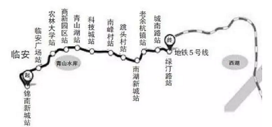 杭州至临安城际铁路工程起于余杭区绿汀路站,终于临安区九州街锦南新城站,是连接杭州市中心城区和杭州市临安区的一条城际铁路。路线长度35.1公里,共设12座车站,平均站间距3.1公里。其中绿汀路站与地铁5号线、地铁3号线换乘。该项目预计2019年底开通试运营。