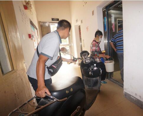 家住南宁恒大苹果园小区的李先生(化名)告诉记者,近日他乘电梯时,一名业主骑着一辆电动车冲进电梯,因为空间有限,车主骑在车上不断调整车子的位置,电梯门和轿厢被剐蹭得哐哐作响。同时,由于电动车碰撞,电梯门一会儿关一会儿开,让他心惊胆战。
