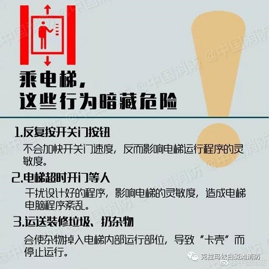 电梯事故时有发生让人不安。每天乘坐电梯,你是否知道反复按开关门按钮、超时开门等人其实暗藏危险?电梯突然故障,怎么自救?了解关于电梯的安全知识,关键时或许能救你一命!