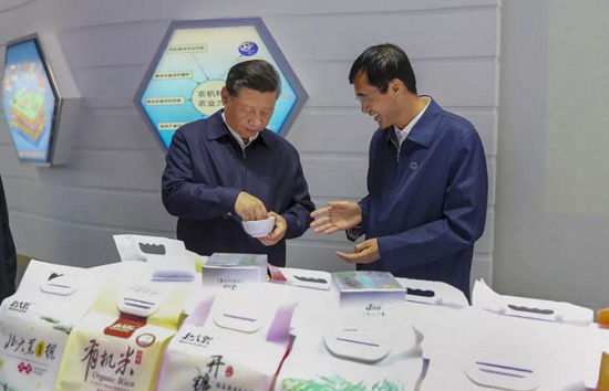 新华社的报道,还特意提到了这样一个细节:在一个农产品展台前,最高领导人走近,双手捧起一碗大米,意味深长地说:“中国粮食!中国饭碗!”