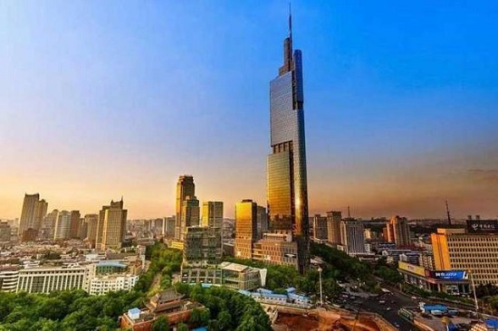 这个大厦前后耗时5年才修建完成,高度有450米,酒店、观光和休闲服务等一应俱全,堪称是南京空中的商务中心,它的总建筑面积达到了261075平方米,其中地下还有4层,所以对于这个高楼来说,是一种很让人意外的大楼,因为在它修建完成后是获得了很多的国际大奖,其中比较有名的就是优秀建筑结构设计奖,这除了是对这个设计师的肯定之外,也是南京能拥有这个地标有了新的骄傲。