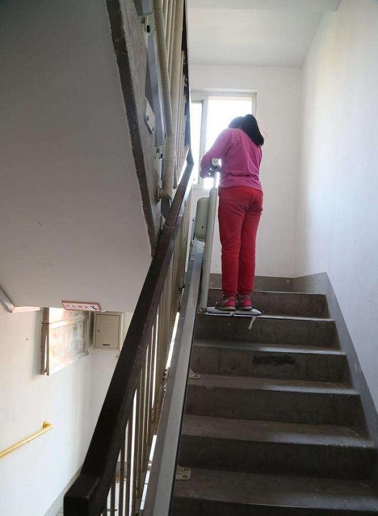 很多老楼房在申请安装电梯的时候都会因为和楼下邻居商量不和最后无疾而终,因为一般电梯安装在老房子里,就会对低楼层居民家里的采光造成影响,而且会占据一大部分的空间。相反这种楼道电梯是安装在楼道里面的,不会影响任何一个楼层的采光,而且因为是站在踏板上上升,一定程度上也省了不少的空间。