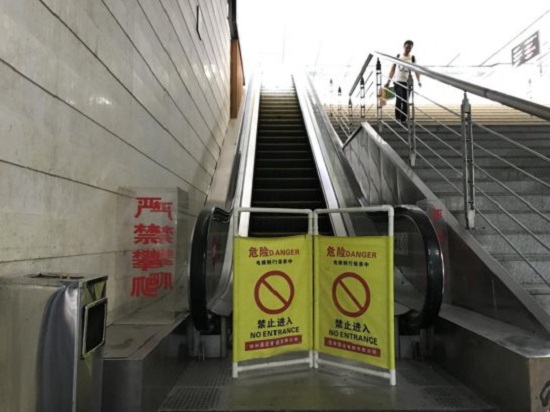 这部电梯的停运已经不是一天两天,在此工作的保安和保洁工人说,此处电梯停运至少有半个多月以上了,这段时间以来所有需要打车、乘车的旅客大部分都是拎着行李走下来。