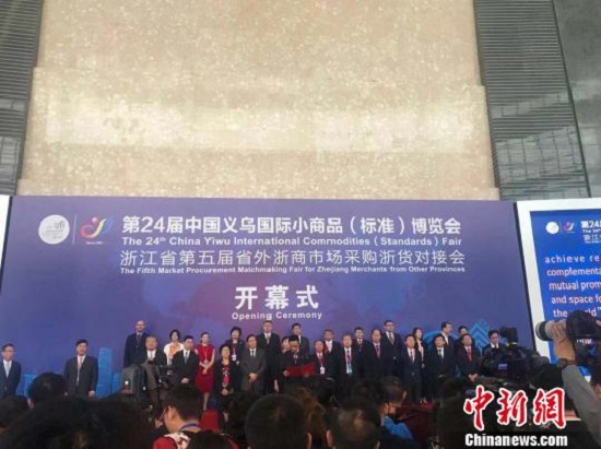 中新网金华10月21日电(记者胡哲斐)21日,浙江省第五届省外浙商市场采购浙货对接会在义乌中国小商品城开幕。此次对接会共有来自全国15个地区的200名采购商参加,助推浙江省外浙商市场与义乌中国小商品城资源共享、优势互补,进一步扩大“浙货”的影响和销售渠道。