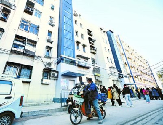昨天上午,体育馆路街道天坛东里50号楼3单元和4单元门前,崭新的玻璃幕墙已安装完毕,根据小区空间定制的电梯通过验收,开始试运行。运营单位给居民送上电梯乘梯卡。居民们自发准备了饺子皮儿和馅儿,准备包饺子举办庆功宴。