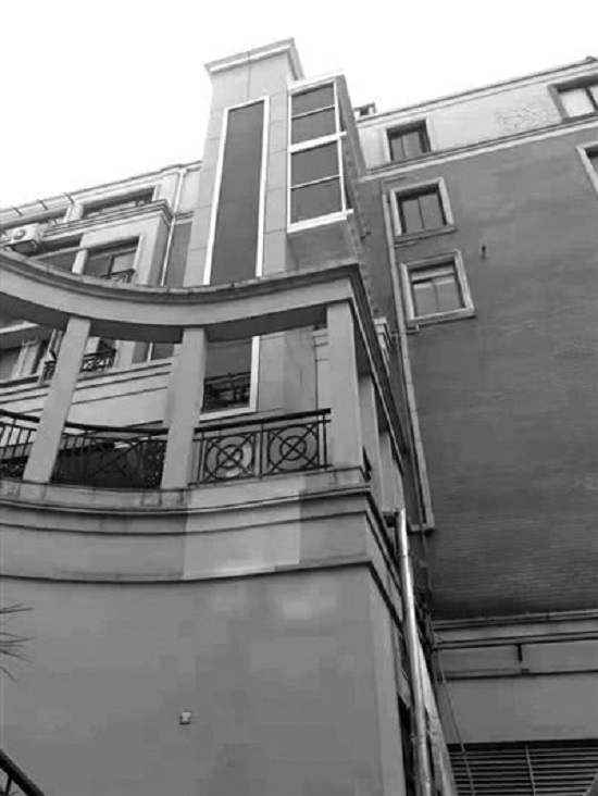 加装电梯的是清波苑2幢3单元,一共7层,1到3楼是商铺,4楼是一间大厅,供业主和住户活动和进出。5楼开始住人,电梯只装给5、6、7三层6户人家。没装电梯时,他们从1楼坐电梯或爬楼梯到4楼大厅,穿过一个篮球场大小的露天平台(商铺的3楼屋顶),再爬楼梯回家。