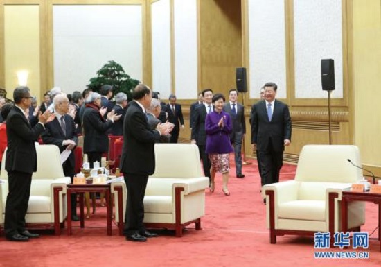 11月12日,国家主席习近平在北京人民大会堂会见香港澳门各界庆祝国家改革开放40周年访问团。新华社记者王晔摄