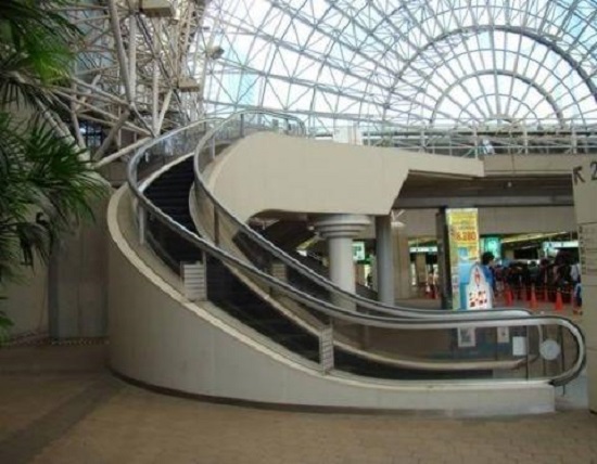 不同于传统的电梯,这是一个螺旋扶梯,位于日本东京。