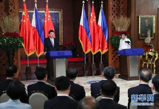 11月20日,国家主席习近平在马尼拉同菲律宾总统杜特尔特举行会谈。这是会谈后,两国元首共同会见记者。新华社记者谢环驰摄图片来源:新华网