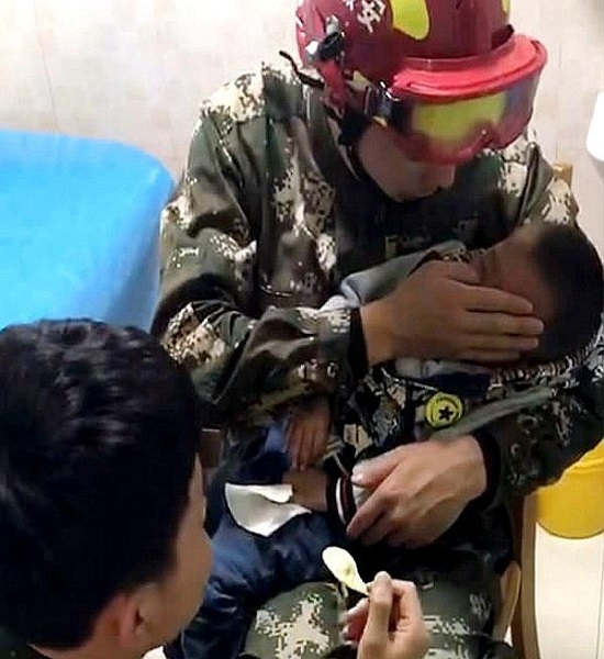 到达医院后,消防员们抱着男孩做全面检查。此时已中午12点,几个消防员怕孩子肚子饿,又去买来一碗热腾腾的馄饨。“好香的,吃一口吧好不好,不哭了,吃一口吧,妈妈马上就来!”还没结婚的几个小伙子一边笨拙的给孩子擦眼泪一边小心翼翼喂馄饨。
