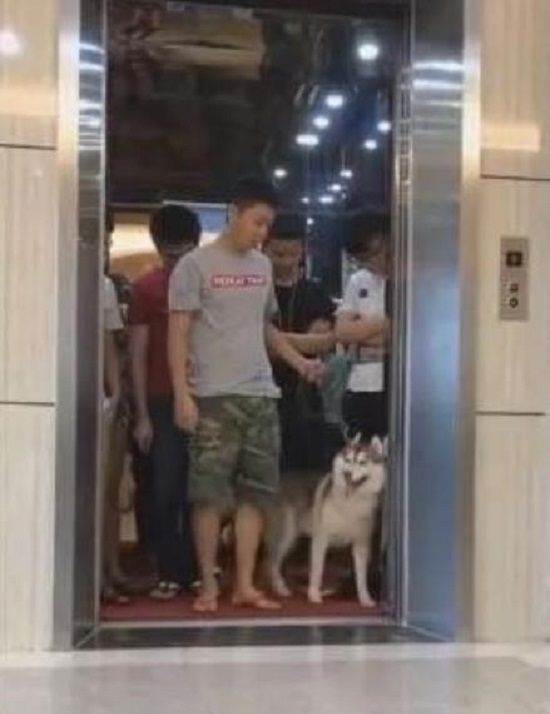 这天,宠主带着二哈出去遛弯,因为楼层太高了,走路下去也是不现实的,所以就带着二哈去坐电梯了。电梯门一开,看着坐电梯的人还挺多的,但是也不愿意等了,就这样带着二哈挤了进去。但是刚把二哈拉了进去,就听到了电梯超重的声音。