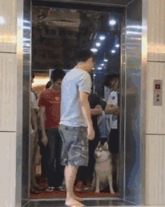 结果,就在宠主还在说服二哈出来的时候,二哈瞪了主人两眼,电梯门就关上了。
