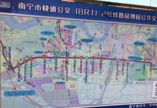 BRT2号线沿途贯穿园博园、五象湖公园、南宁市民中心、南宁市体育中心、五象火车站、八俐工业园区等南宁市重点景点及重点场所。合理的接驳设计让老百姓的出行更加便捷。