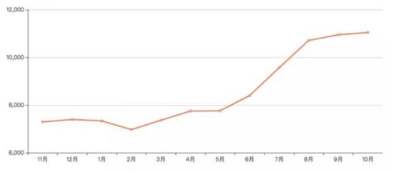在多种因素的作用下,贵阳房价开启狂奔模式。吉屋网的数据显示,2018年10月,贵阳的新房均价为11172元/平方米,而去年同期仅为7377元/平方米,一年时间内涨幅超过50%。