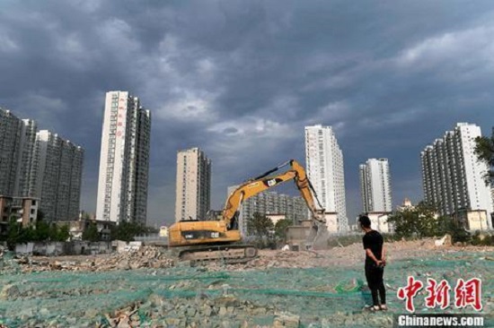 资料图:工人操作挖掘机在山西太原一商品房建设工地施工作业。中新社记者韦亮摄