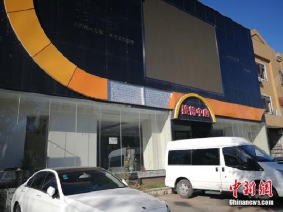2018年10月,燕郊售楼一条街的多家售楼处大门紧闭,玻璃门上贴着门市出租的广告。中新网记者邱宇摄