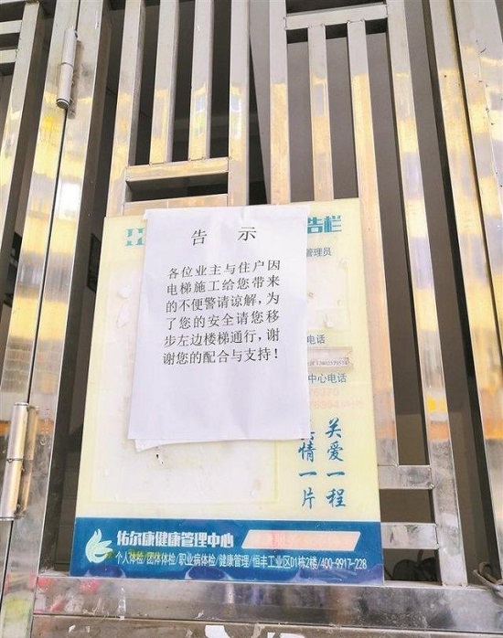 ▲业主在加装电梯施工时曾贴出告示。深圳晚报见习记者高灵灵摄