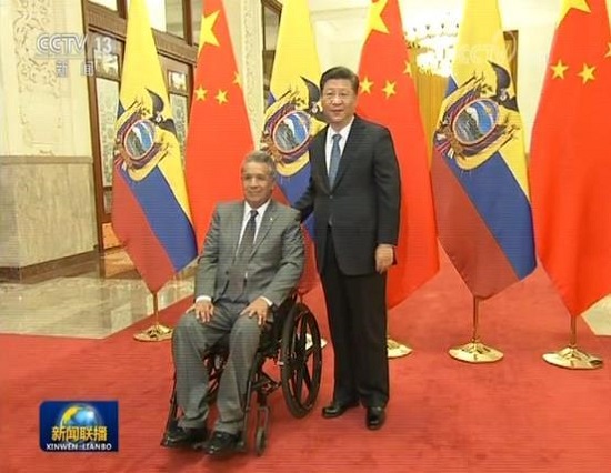 习近平指出,2016年,我对厄瓜多尔进行国事访问,两国建立全面战略伙伴关系,翻开了中厄关系发展新篇章。总统先生上任后致力于深化中厄友好合作,我对此表示赞赏。推动中厄关系健康稳定发展,符合两国和两国人民根本利益,也符合和平、发展、合作、共赢的时代潮流。
