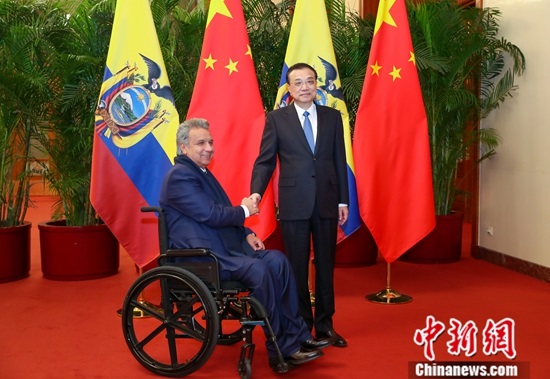 12月13日下午,中国国务院总理李克强在北京人民大会堂会见来华进行国事访问的厄瓜多尔总统莫雷诺。中新社记者刘震摄